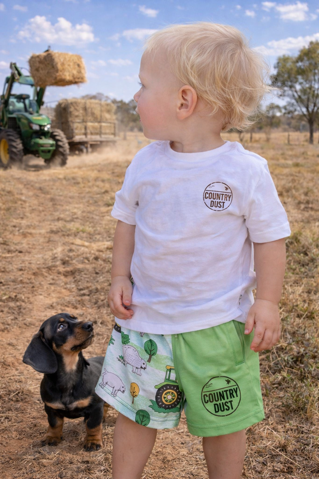 Designed for the love of my nephews who love tractors. Kids Tractor Shorts feature a fun tractor-themed design, crafted from durable materials to withstand active play. With a comfortable fit, these shorts are perfect for everyday wear.